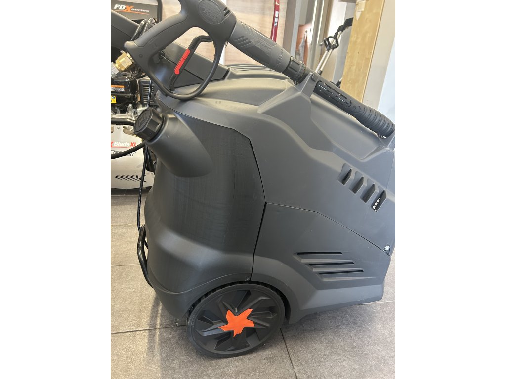 Díky velkým zadním kolům a otočnému přednímu kolečku s brzdou se snadno přesouvá i v náročném terénu. Sklopná rukojeť navíc usnadňuje přepravu například v kombi voze. Čistič je navržen pro poloprofesionální použití – ideální pro živnostníky, autoservisy nebo údržbáře.