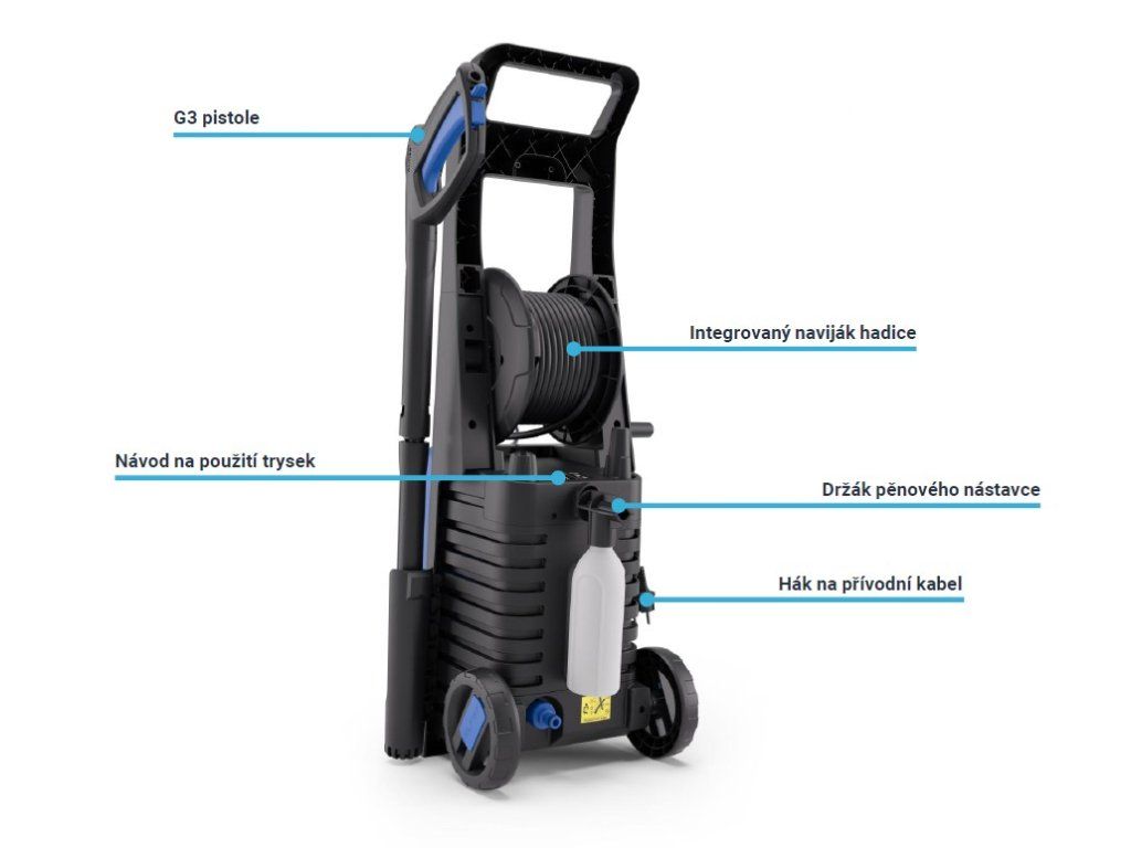 Díky delší hadici a integrovanému navijáku poskytuje maximální komfort při používání. Bez problémů zvládne mytí automobilů, teras, dlažby i zahradního vybavení. Je ideální volbou pro ty, kteří hledají spolehlivý výkon a dlouhou životnost.