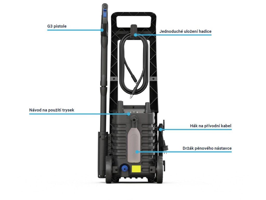 Bez problémů si poradí s čištěním teras, příjezdových cest, zahradního nářadí nebo dlažby. Díky promyšlenému designu a praktickému uložení příslušenství je manipulace i skladování velmi pohodlné.
