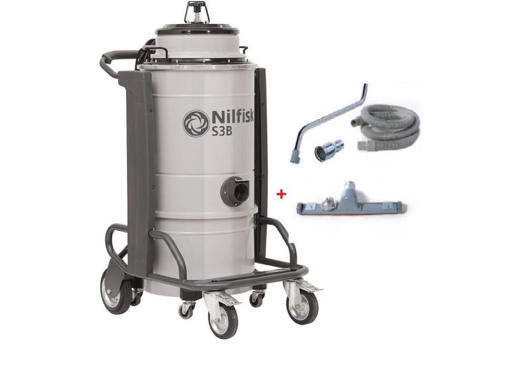 Nilfisk S3B L 100 plus ( včetně zobrazeného příslušenství) je profesionální jednoduchý, spolehlivý průmyslový vysavač, který může být vybaveny pro většinu úkolů. Vše od čištění skladišť až po kovový průmysl. Vysavač má několik variant. Obě stroje jsou vybaveny nezávislými 2 nebo 3 by-pass motory.