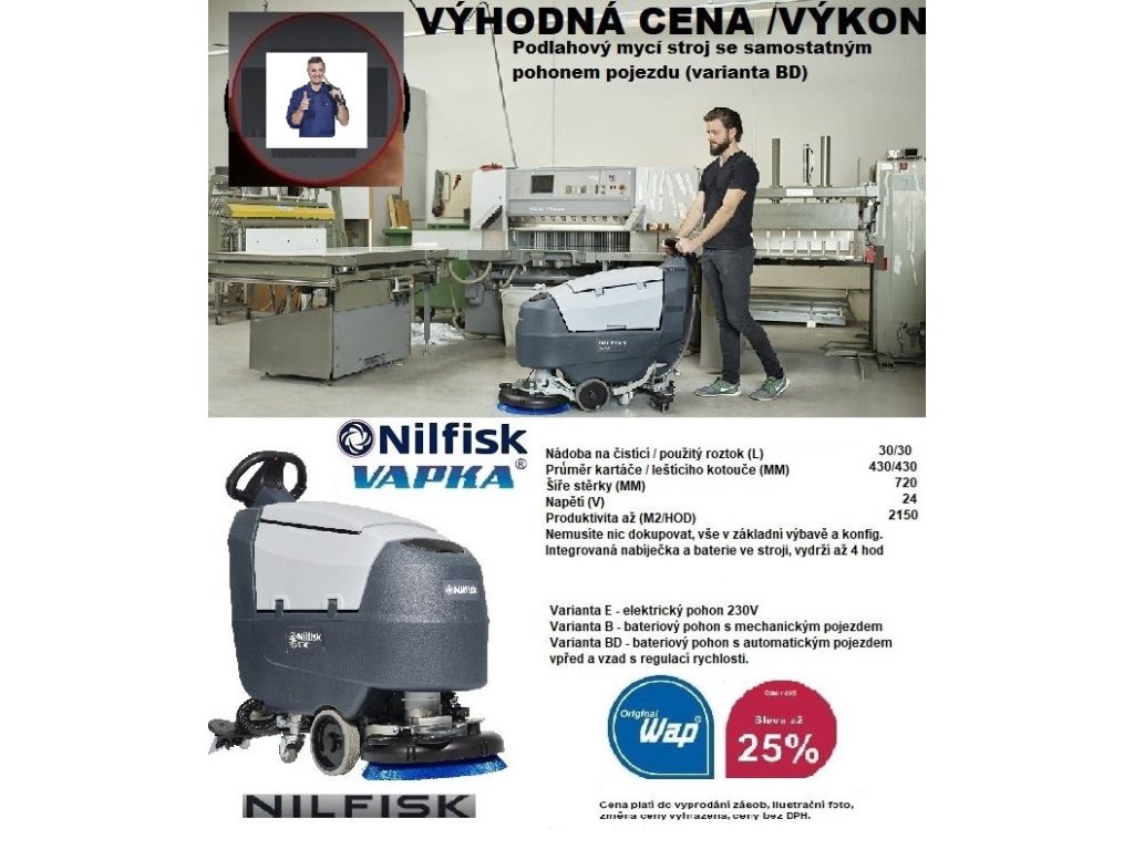 Všechny originální stroje Wap jsou v současnosti označené logy Wap nebo Nilfisk-ALTO či Nilfisk. Pouze tyto tři loga garantují, že kupujete originál Wap.